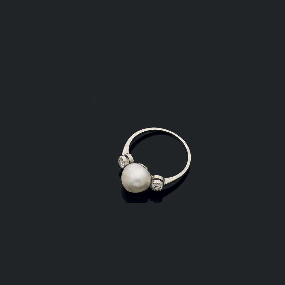 A natural pearl, diamond and platinum ring, report