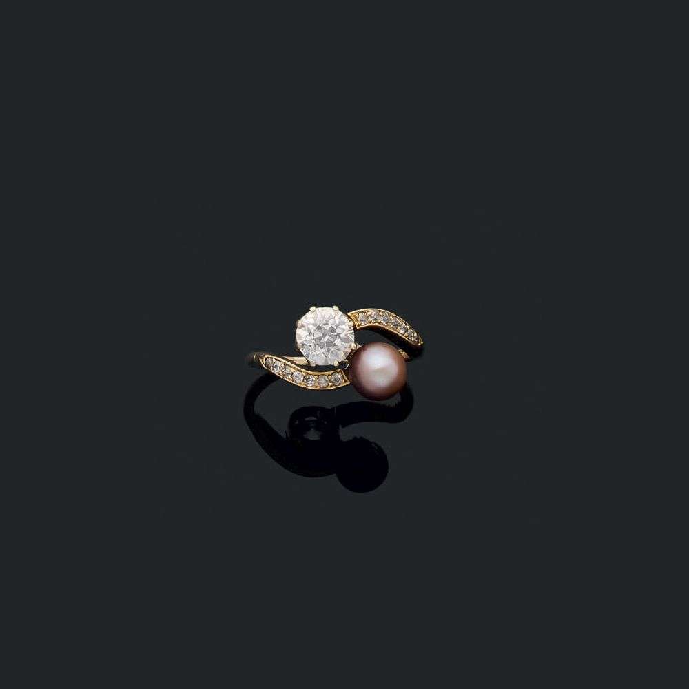 A diamond, pearl, not tested and gold ring