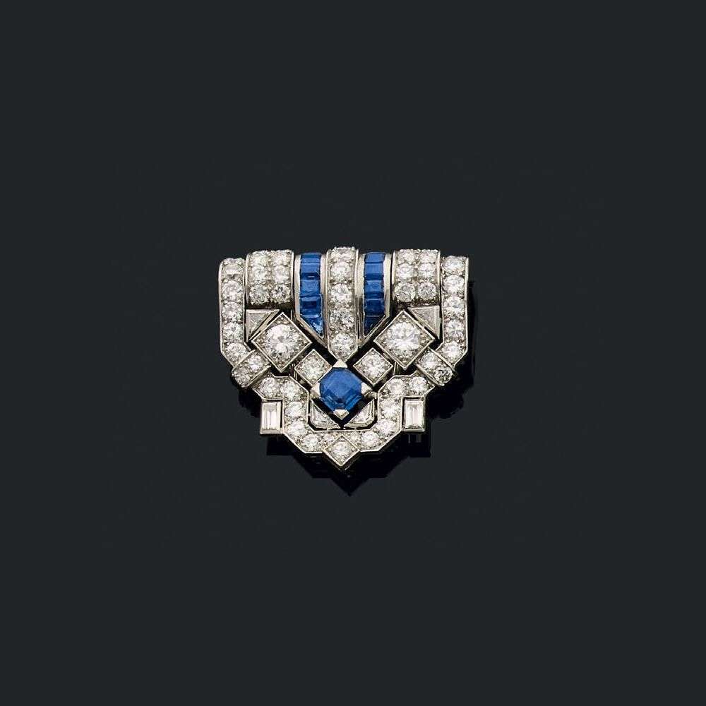 A sapphire, diamond and gold brooch