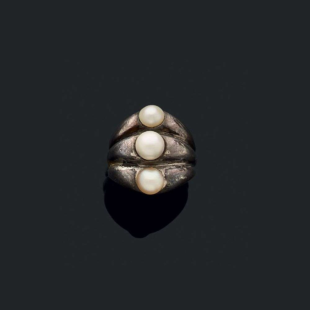 A pearl and silver ring by Suzanne Belperron.