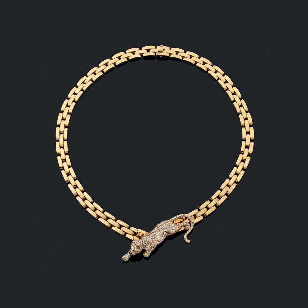 A diamond, emerald, onyx and gold necklace, signed Cartier