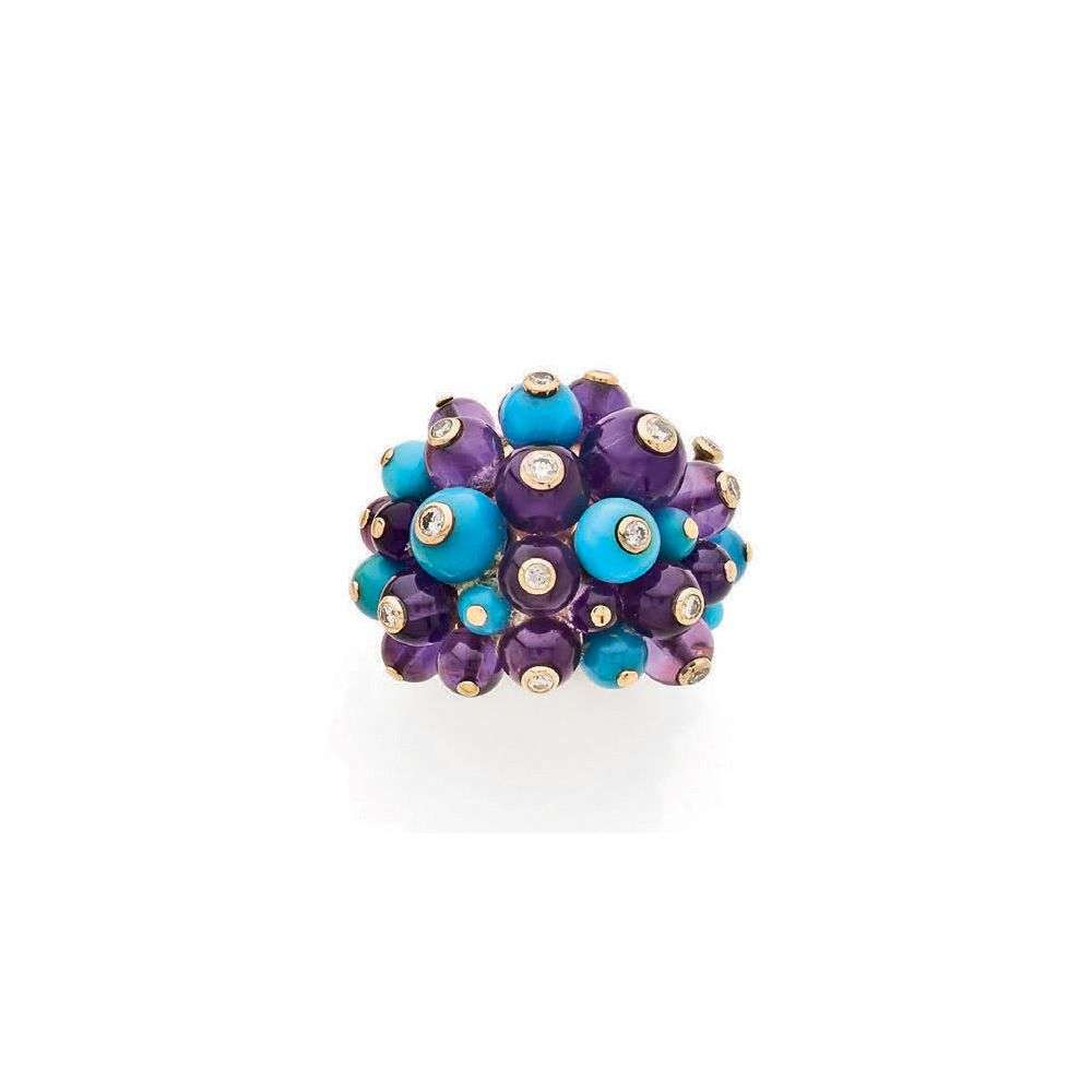 An amethyst, turquoise, diamond and gold ring, signed Cartier