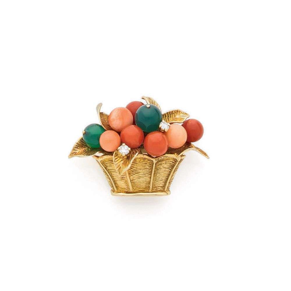 A coral, crysoprase, diamond, gold pendant, signed Van Cleef & Arpels