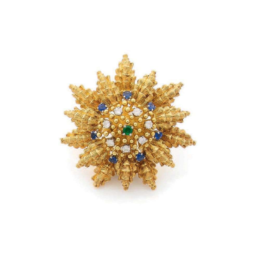 A sapphire, emerald, diamond and gold brooch, signed David Webb