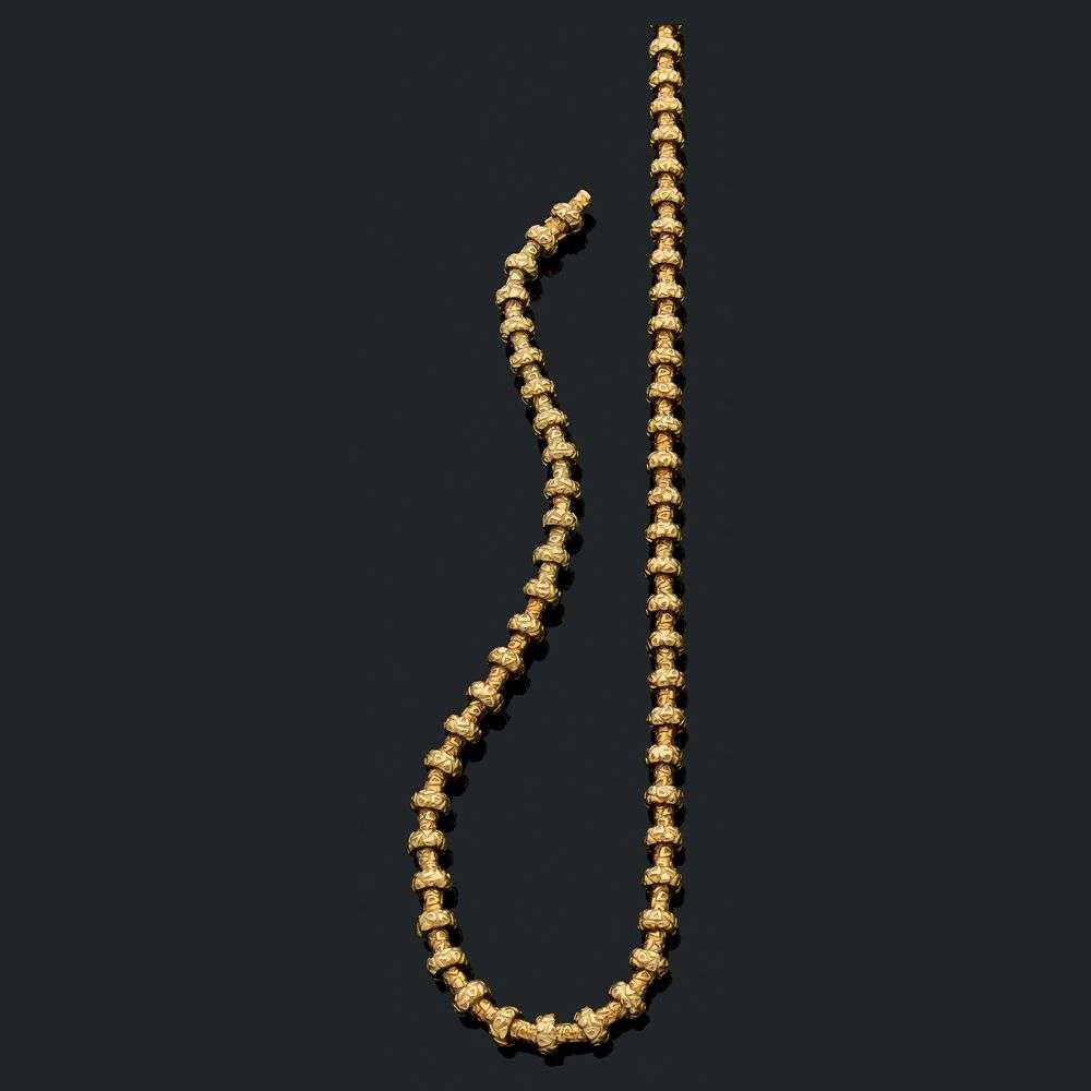 A gold necklace, stamped and signed
