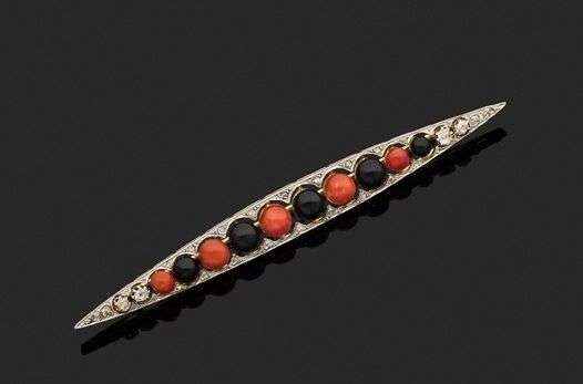 Cabochons de corail et onyx, diamants taille ancienne et taile rose