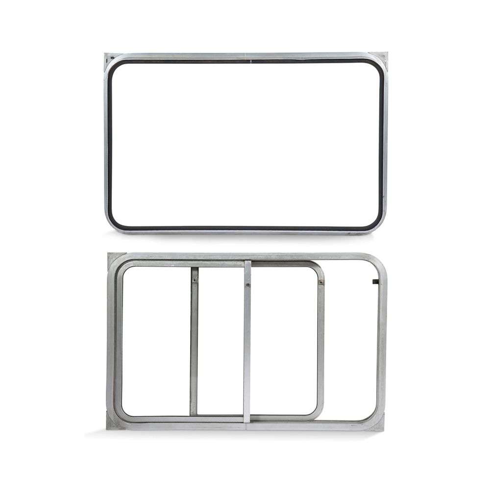 En aluminium et verre, l’un vitré fixe, l’autre vitré coulissant.