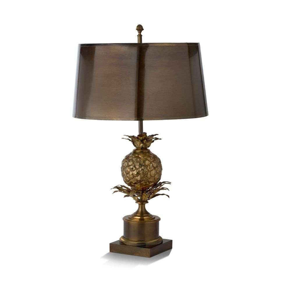 An « Ananas » table lamp, c. 1970, patinated bronze and brass, original lampshade.