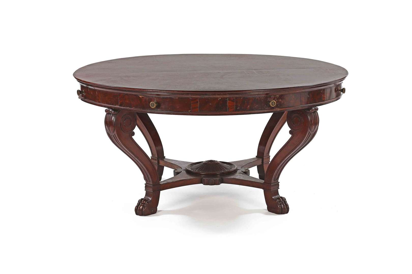 Circulaire en acajou et placage d’acajou.