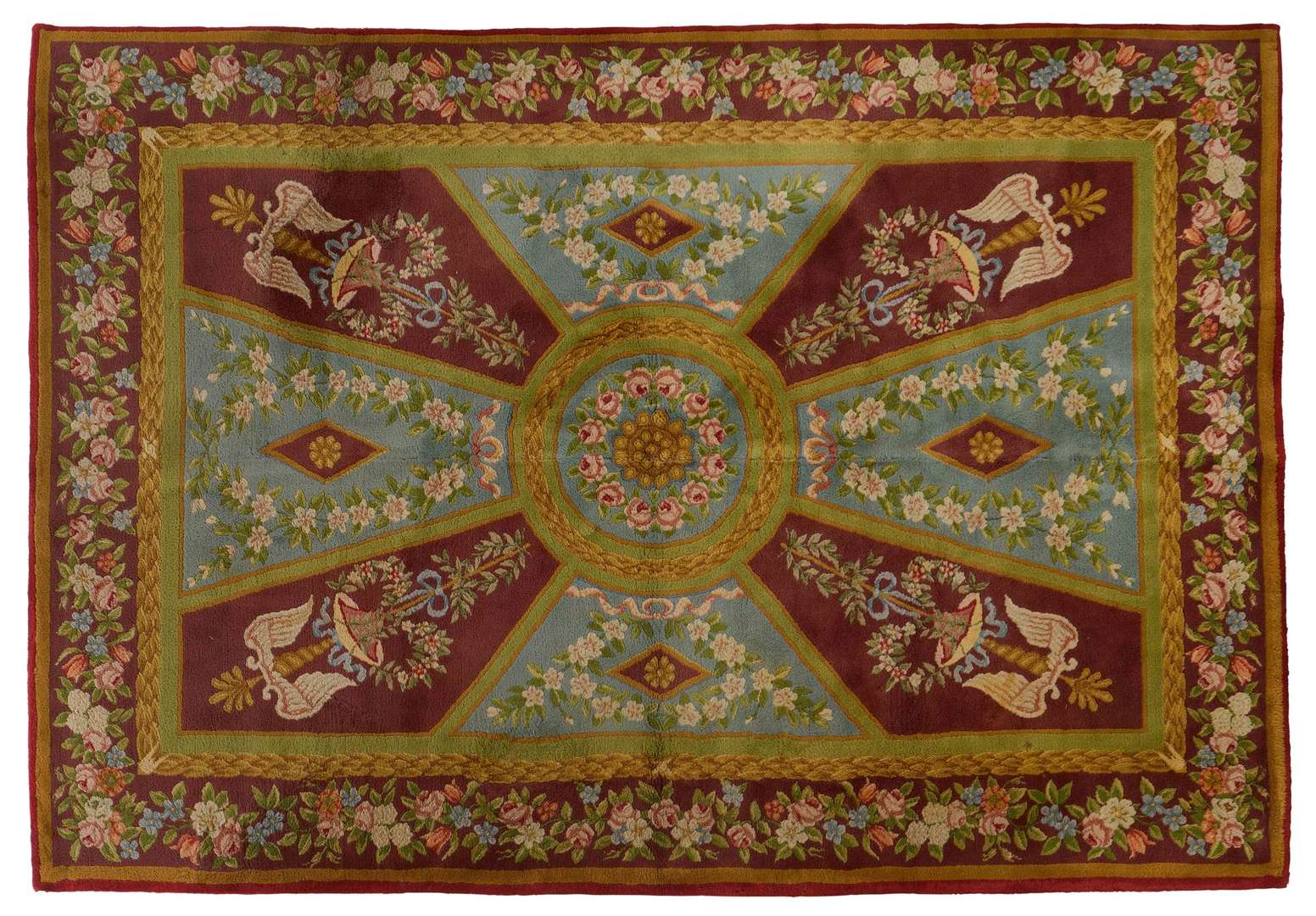 d’un large médaillon central à couronne de fleurs