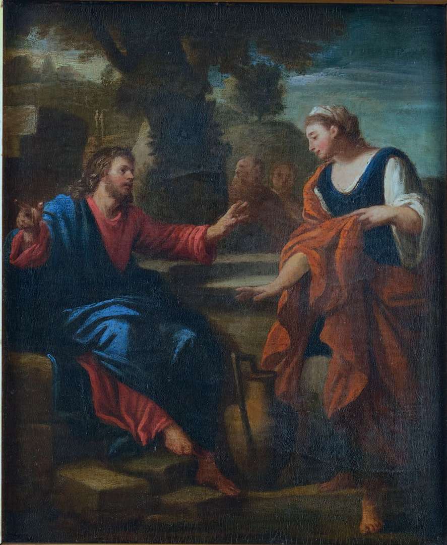 Louis Laguerre, qui se trouvait dans la même situation que Louis Chéron, a fait quelques tentatives dans ce sens. Là encore, le nombre de peintures de Laguerre qui n'entrent pas dans la catégorie des esquisses ou des modelli était proche de zéro jusqu'à récemment, mais un très petit nombre d'exemples a été récemment identifié (voir François Marandet, op. cit., 2021, p. 760). Ces tentatives ont peut-être été motivées par l'entreprise de la « Bible au vinaigre » en 1716-1717 | cette publication en deux volumes comprenant l'Ancien et le Nouveau Testament a en effet été enrichie d'un important ensemble d'illustrations dont Louis Chéron et Louis Laguerre ont été les principaux acteurs. Or, notre tableau a certainement été conçu dans ces circonstances. Notons d'abord que le style du tableau est tout à fait conforme à celui de Laguerre. La rondeur et la sobriété des formes sont typiques de l'artiste. Il y a même une correspondance entre la tendance à résumer les formes et le sujet lui-même qui, selon la tradition, n'est qu'un dialogue entre Jésus-Christ et une femme au bord d'un puits (les apôtres apparaissant discrètement à l'arrière-plan). Il est intéressant de noter que l'ancien maître de Laguerre, Louis de Boullogne, avait été chargé, en 1694-1695, de représenter Jésus et la femme de Samarie pour le May annuel de la cathédrale Notre-Dame (qui, ironie du sort, se trouve aujourd'hui conservé en Angleterre, à Wardour Castle : Fig. 1). Laguerre semble avoir connu l'aspect de la composition de Louis de Boullogne, peut-être par une petite réduction. Cela expliquerait certains points communs, comme la pose générale de Jésus, le traitement de la Samaritaine, ou simplement l'idée de l'arbre proéminent au-dessus du puits. La gravure de Jean Simon (Fig. 2) confirme que notre tableau est bien de Laguerre. Le Département des estampes et des dessins du British Museum conserve en effet deux exemplaires de cette gravure (inv. 1954,0520.2 et inv. 2010,7081.3444). Il s'agit en fait d'une des très rares compositions de Laguerre à avoir été gravée, avec la Résurrection de Lazare et Jésus guérit l'aveugle. Notre tableau n'en est que plus important (ces deux dernières compositions n'ayant pas refait surface). Laguerre semble avoir connu l'aspect de la composition de Louis de Boullogne, peut-être par une petite réduction. Cela expliquerait certains points communs, comme l