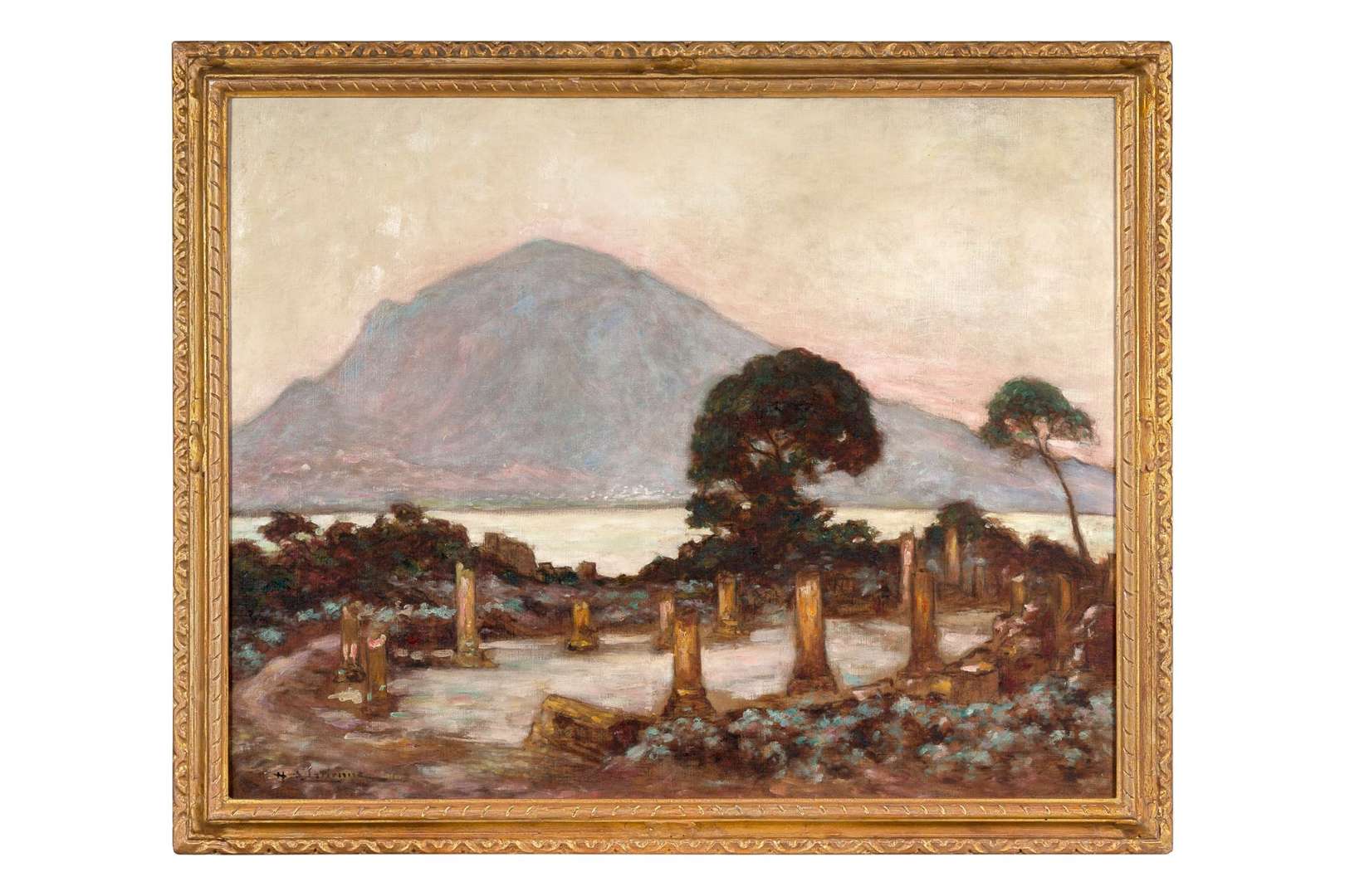 Henry d'Estienne (1872-1949), Vues des ruines de Tipasa en Algérie avec le Chénoua à l'arrière-plan, huile sur carton, signée en bas à gauche, 41 x 67,5 cm, in. Vente, Tableaux et arts décoratifs du XXe siècle, Sotheby's, Paris, Galerie Charpentier, 17 novembre 2004, lot 32