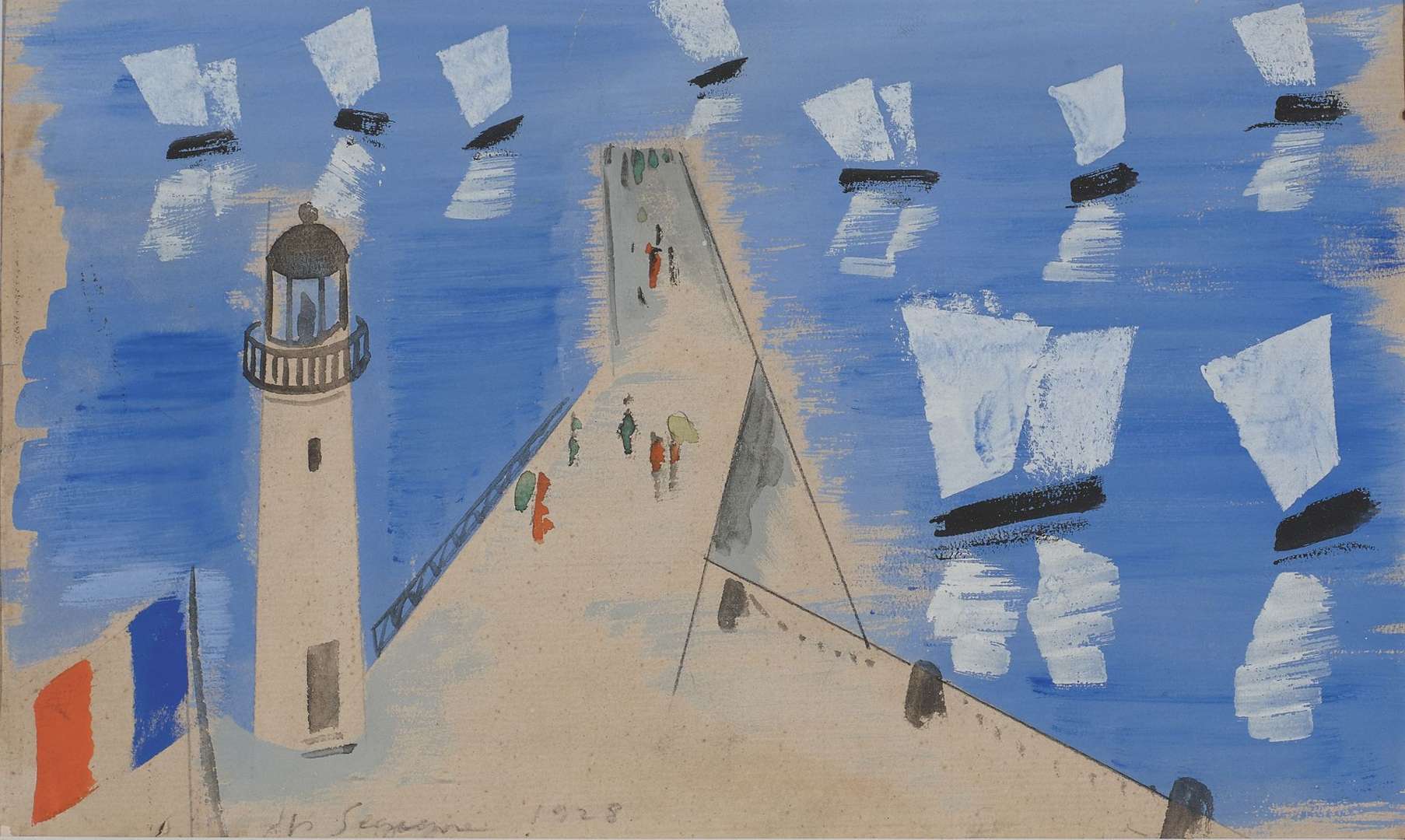 Gouache and graphite on paper, signed and dated '1928' lower left