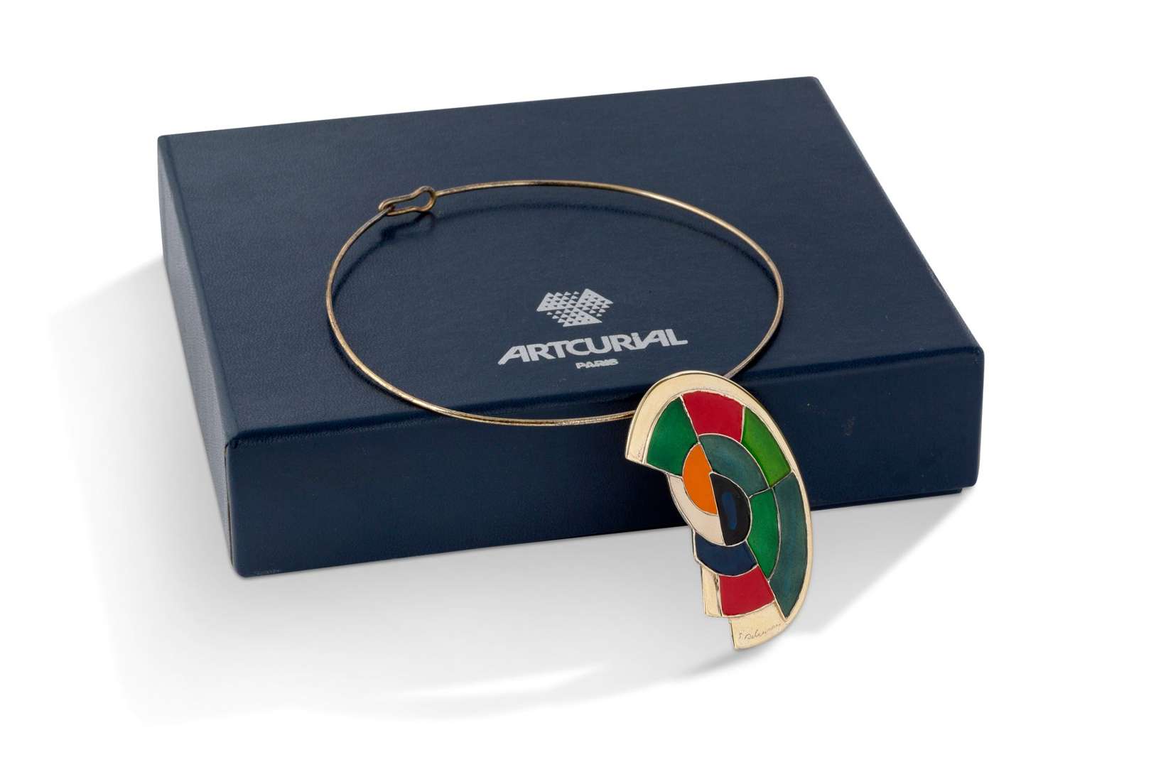 Gilded silver and enamel necklace and pendant, signed, inscribed 'Artcurial' and numbered of 150, with its original box