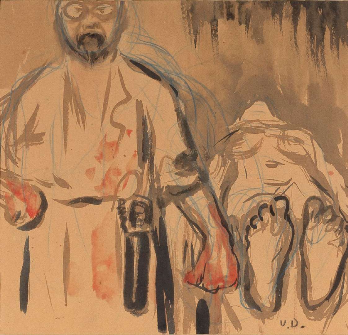 Aquarelle, encre de Chine et crayon bleu sur papier