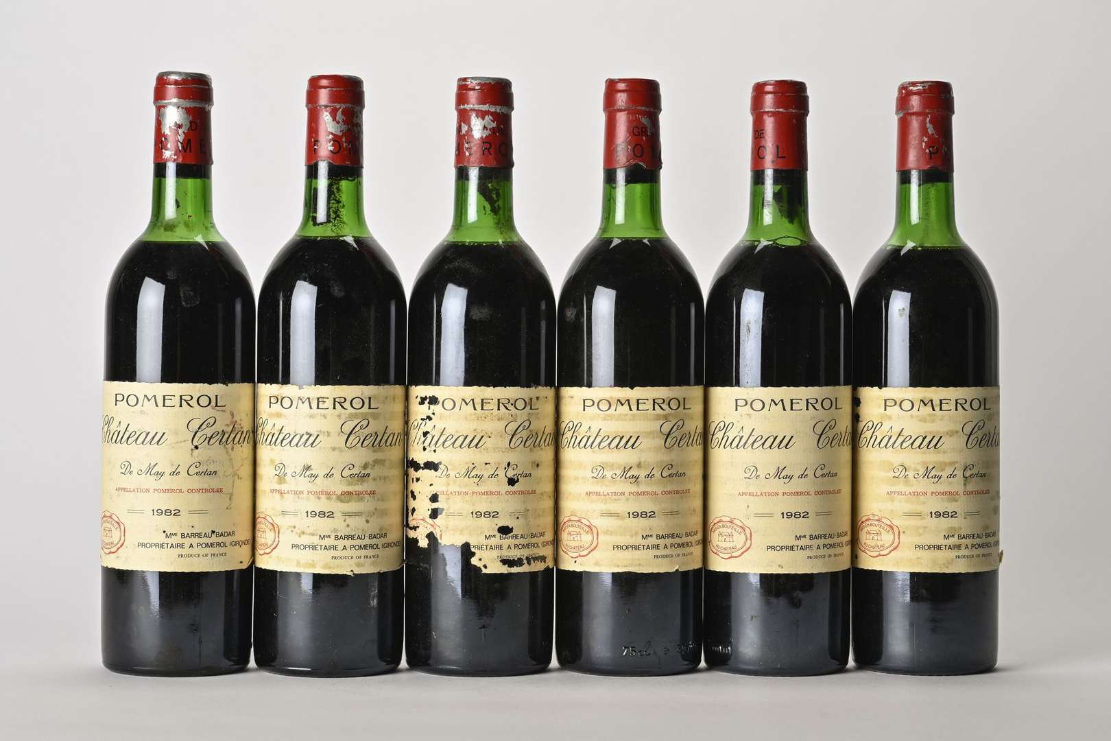 6 B CHÂTEAU CERTAN DE MAY (5 T.L.B à H.E.+| 1 H.E| e.t.h. à e.t.a| c.c. dont 3 c.l.a. bas de jupes) - 1982 - Pomerol