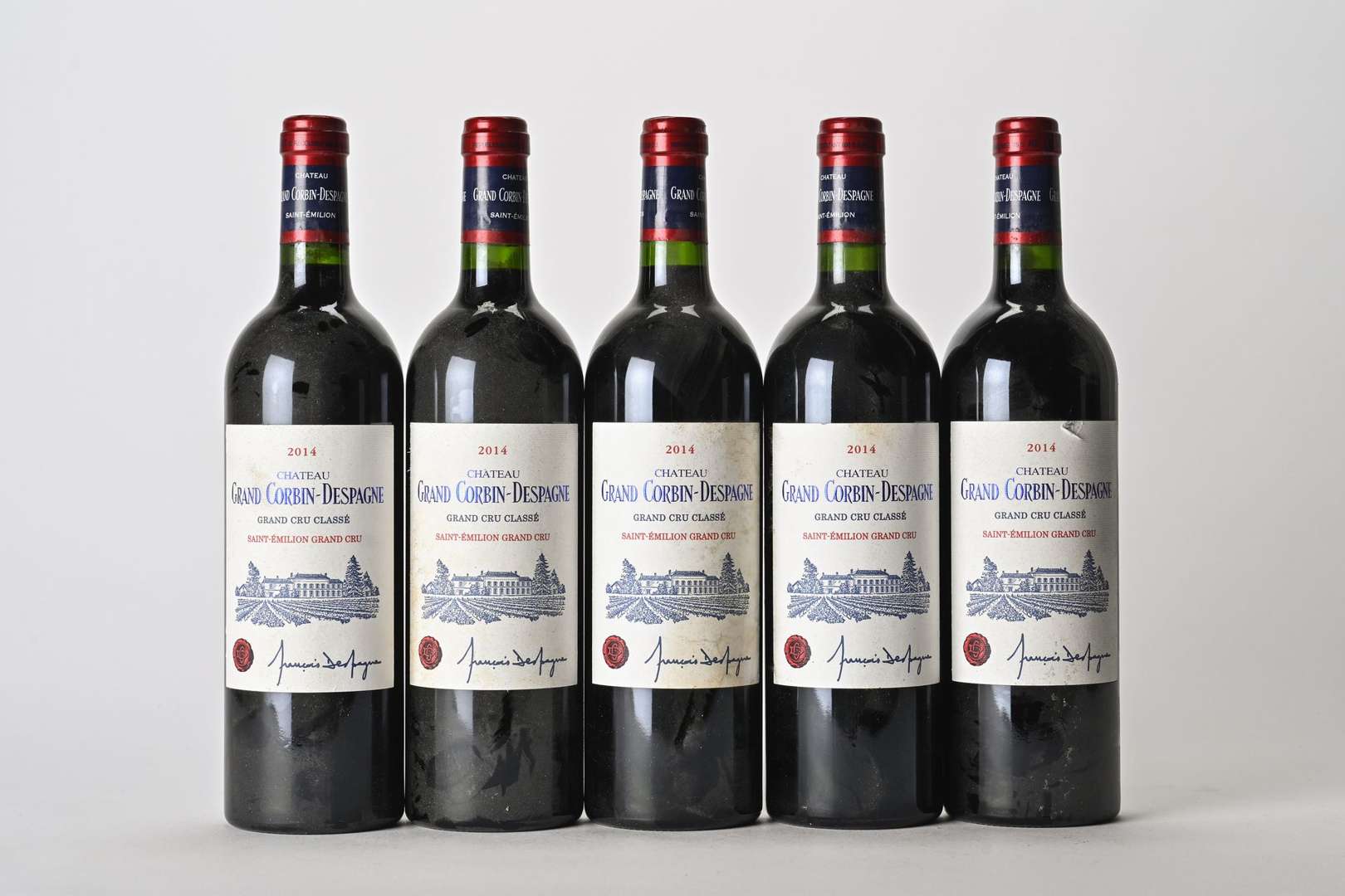 5 B CHÂTEAU GRAND CORBIN-DESPAGNE (Caisse bois d'origine de 6 sans pavillon supérieur remise à l'acquéreur) (e.t.h. dont 2 e.a.) - 2014 - GCC Saint-Emilion