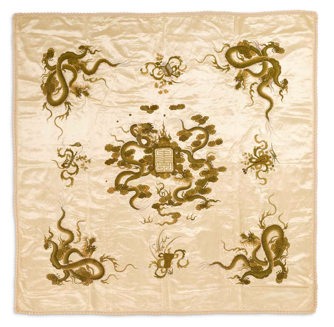 Panneau en satin de soie crème brodé