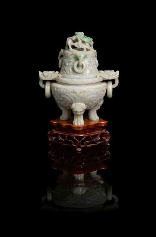 Brûle-parfum couvert en jadéite sculpté