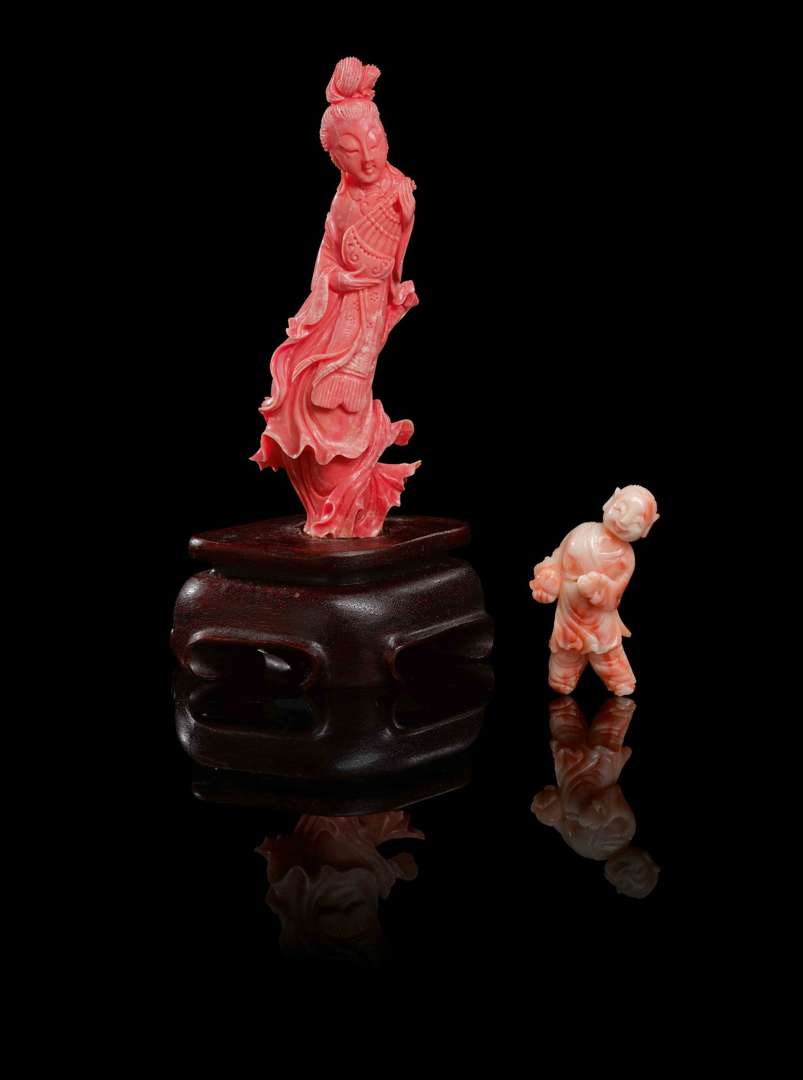 Une statuette d'enfant en corail peau d'ange sculpté