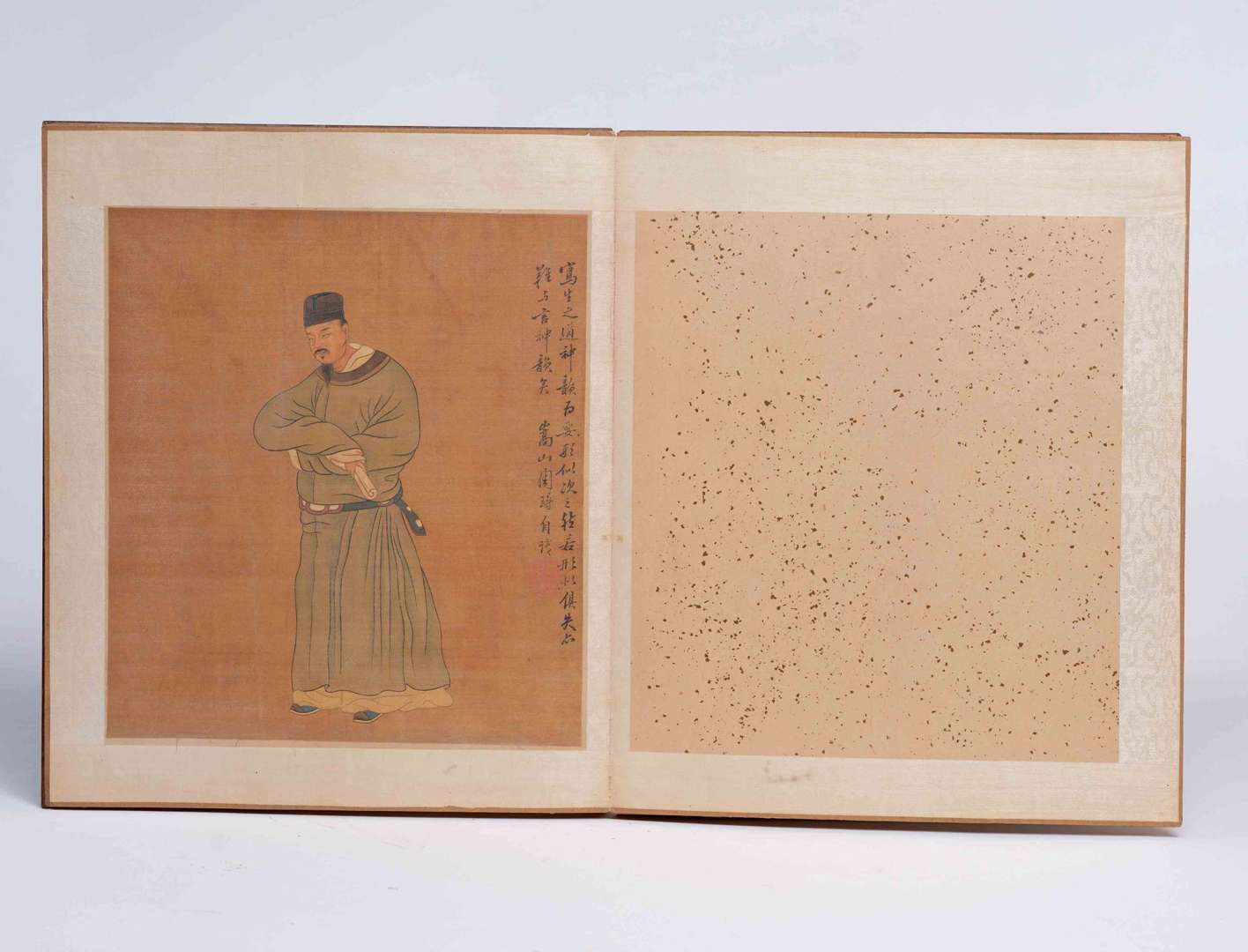 Composé de douze feuilles à l'encre et couleurs sur soie figurant des personnages illustres.