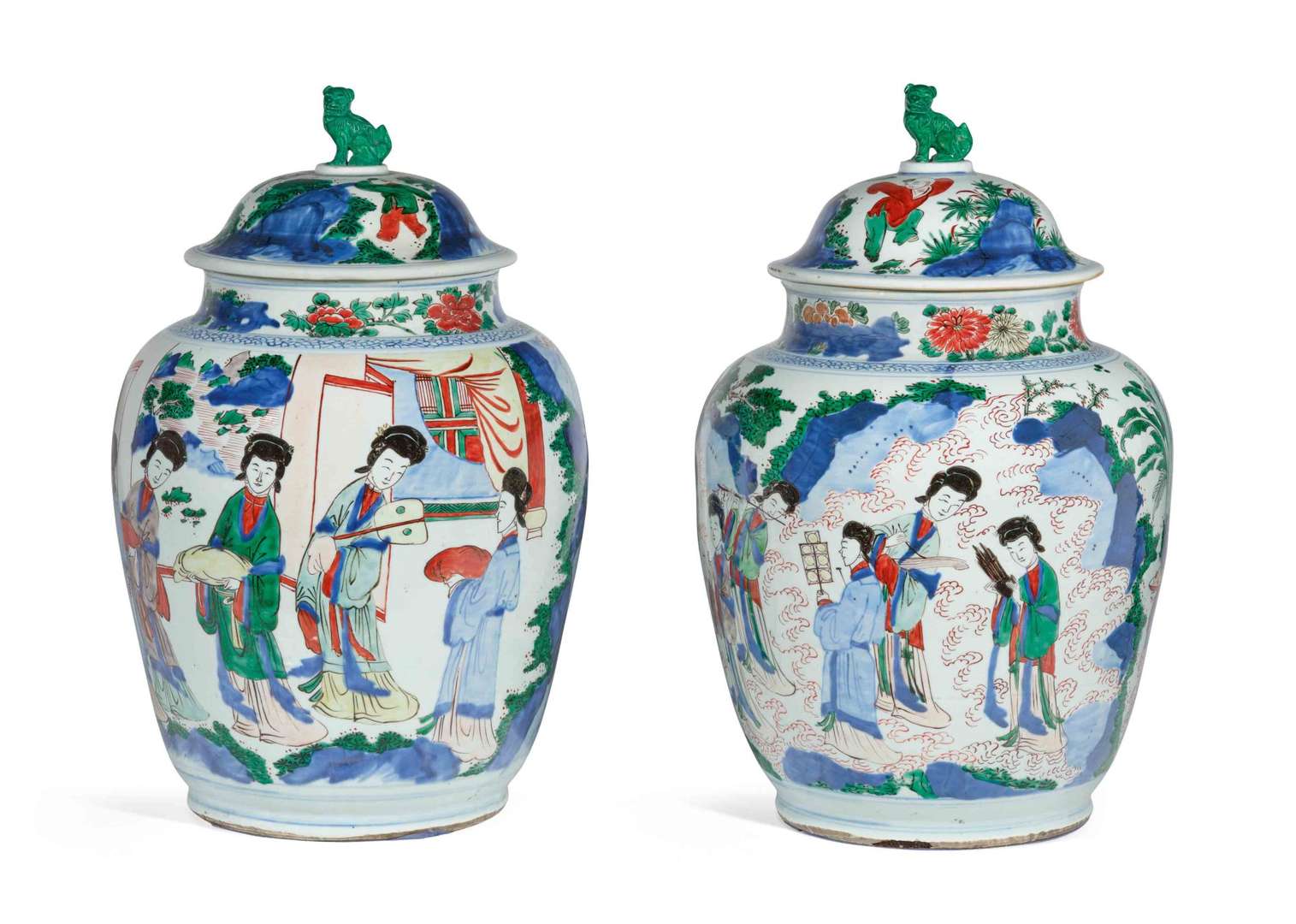 Paire de potiches couvertes en porcelaine aux émaux wucai