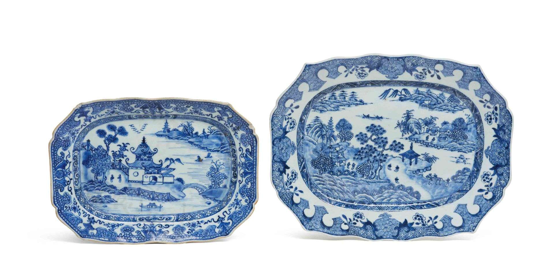 De forme rectangulaire chantournée à décor de paysages lacustres.
