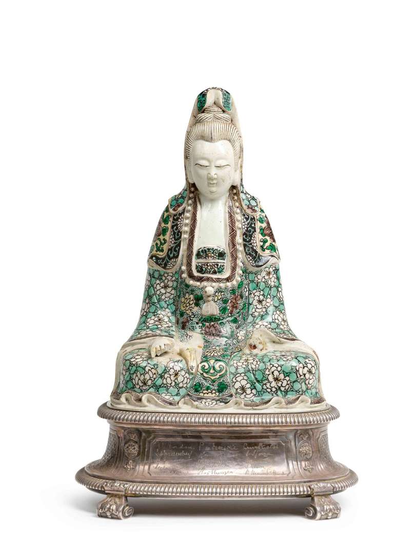 Statue de Guanyin en biscuit aux émaux de la famille verte