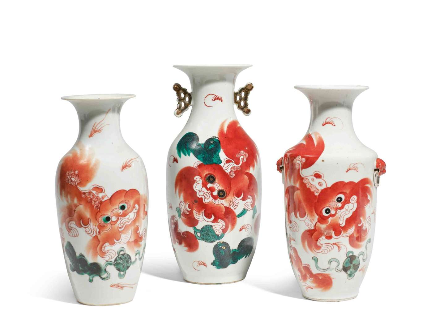 Décorés de lions bouddhiques aux émaux polychromes.