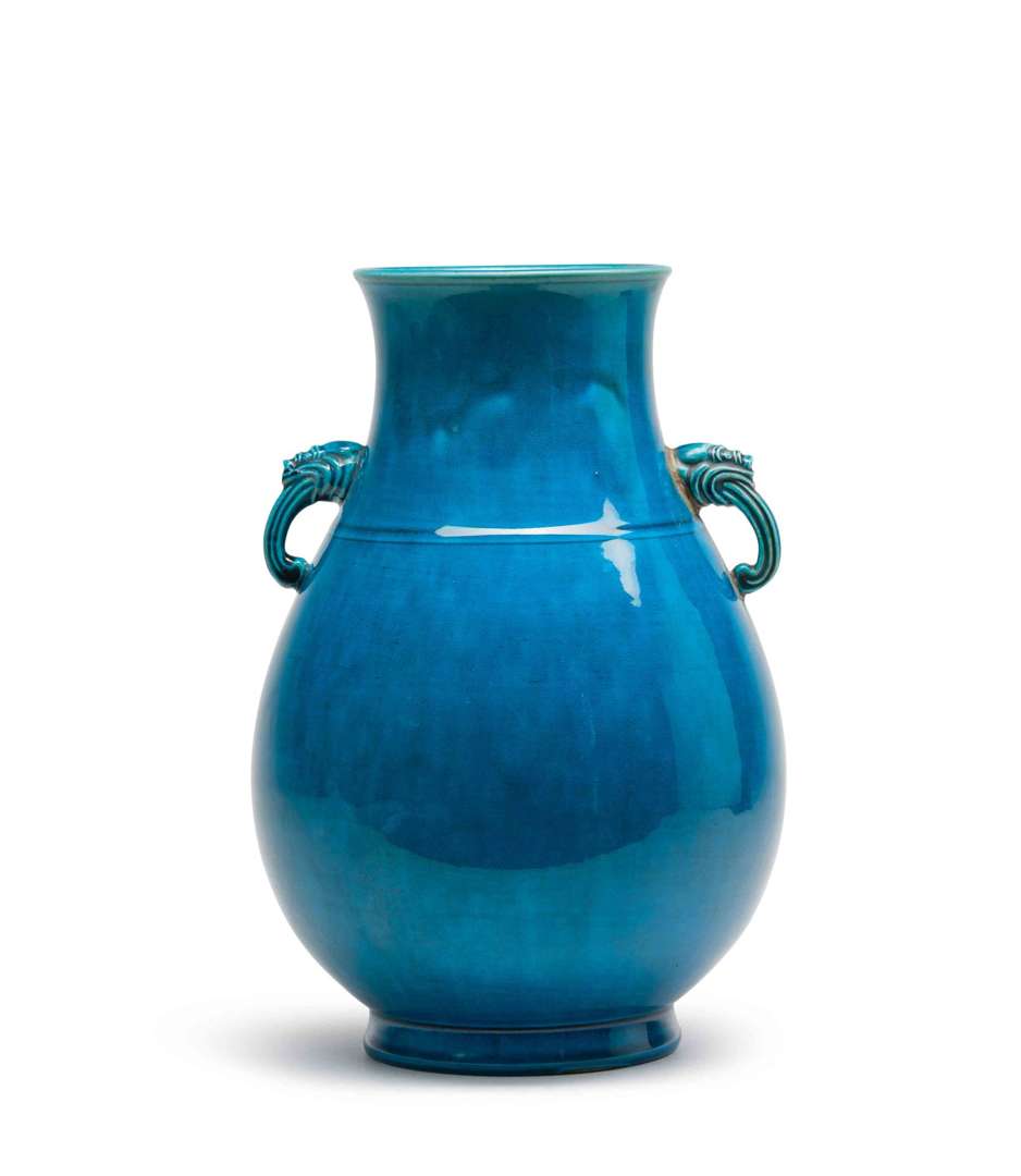L'épaule flanquée de deux anses à têtes de chimère. La base avec une étiquette "L. Wannieck Paris" portant une mention manuscrite "Kang Hsi 1662/1723).