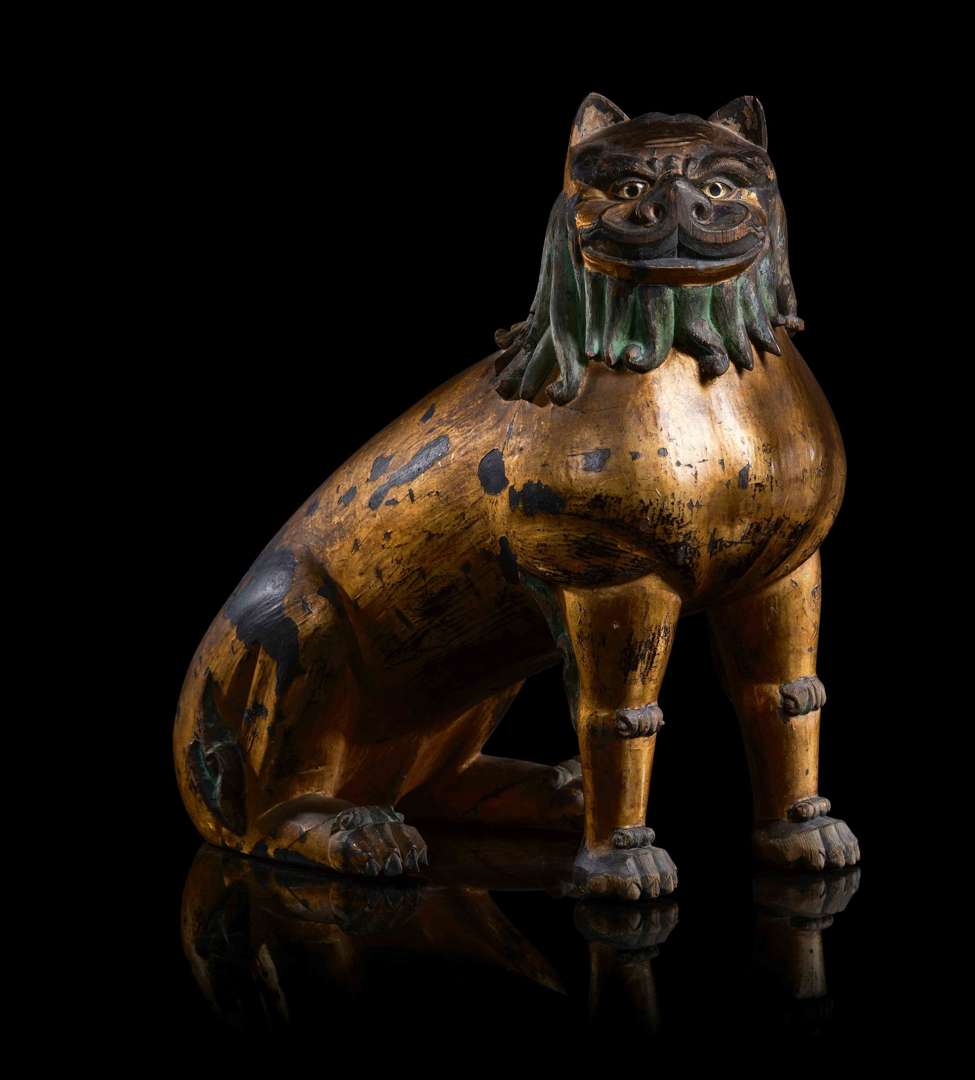 Paire de chiens-gardiens Komainu en bois laqué doré