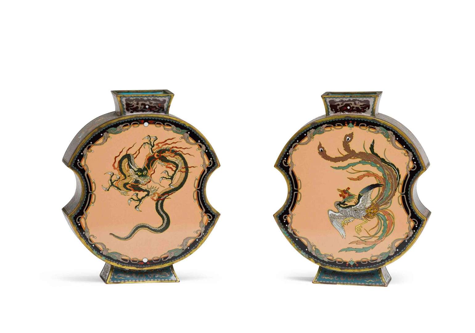 De forme chantournée, orné sur une face d'un dragon, et sur l'autre d'un phénix en vol.