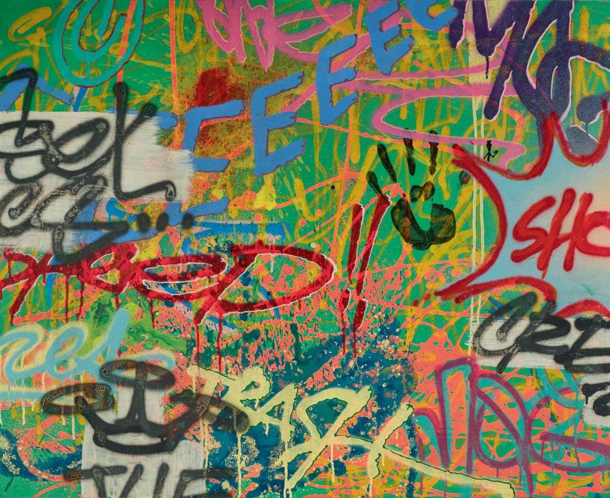 Spray paint and acrylic on canvas, signed and dated 'Mai 92 IV' and titled on the reverse