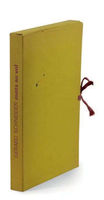 Ouvrage «mots au vol», éditions Saint-Germain-des-Prés accompagné d'un ensemble de lithographies, dans son emboitement d'origine. Préface de Eugène Ionesco. Ouvrage dédicacé par Gérard Schneider.