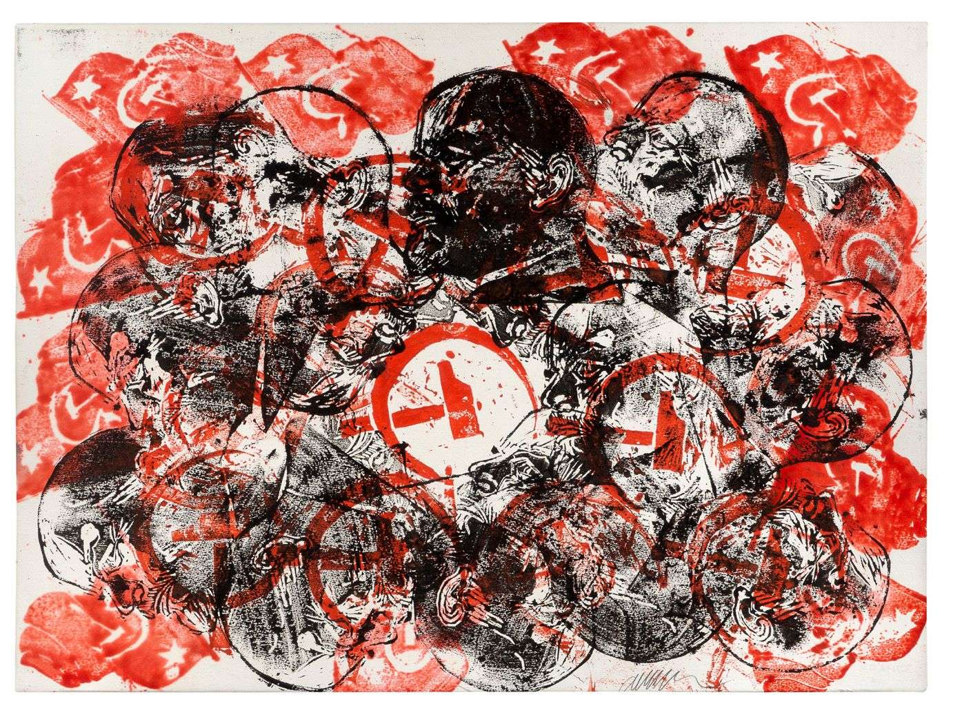 Empreinte à l'encre sur papier marouflé sur toile, signée en bas à droite