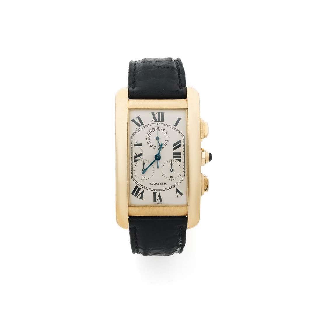 Introduced to the Cartier collections in 1989, the Tank Américaine was inspired by the design of the 1920s Tank Cintrée. In 1994, a chronograph version appeared, marketed under reference 2312 and equipped with a Chronoflex quartz movement. Invented by Piaget in 1991, the Chronoflex was one of the world's smallest quartz movements. Featuring a calendar and a chronograph, this remains a special watch in the Cartier universe.