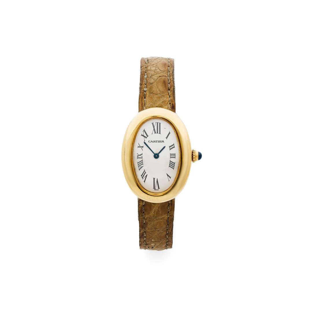 Boîtier : ovale, couronne de remontoir ornée d'un cabochon, fermeture à vis, signé