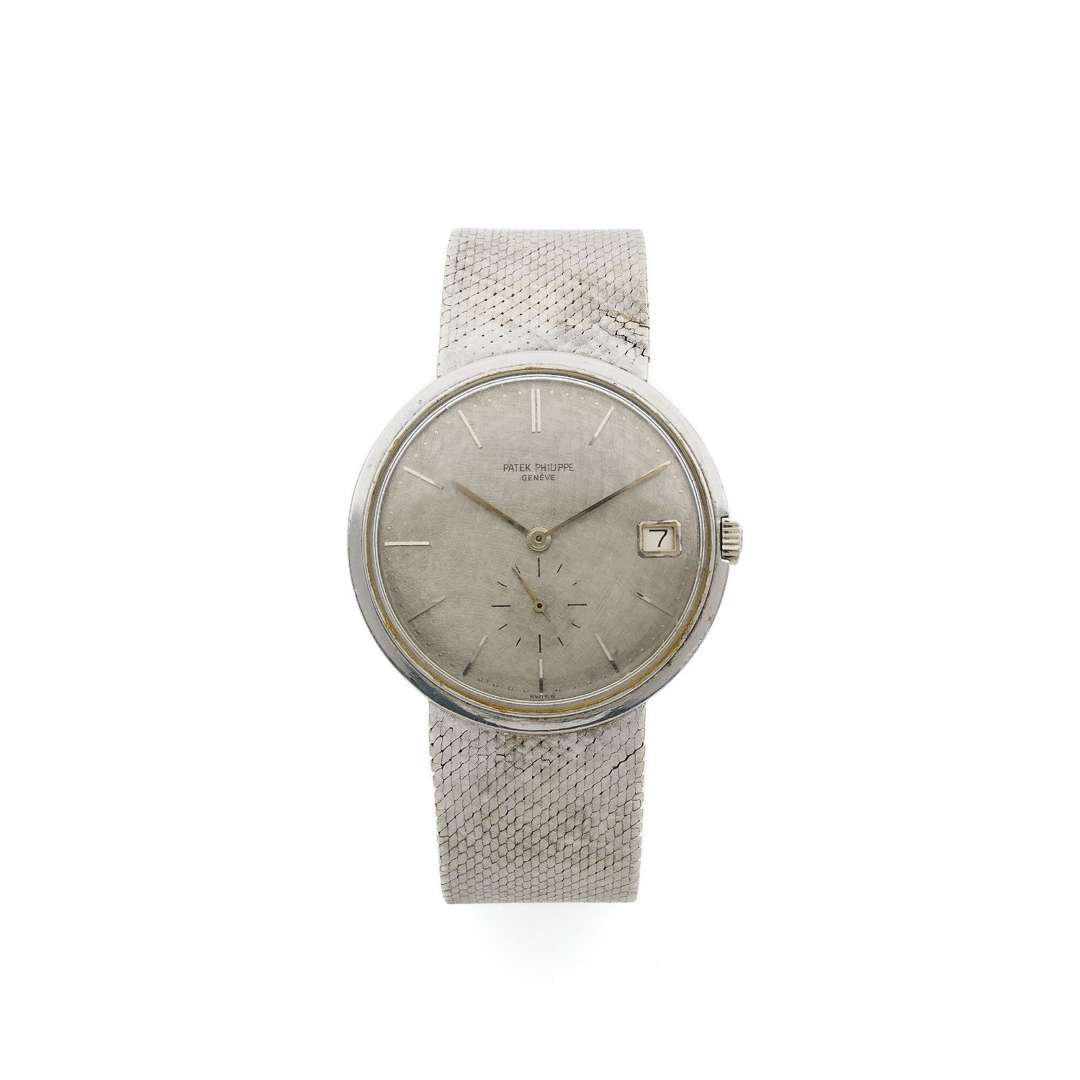 A white gold self winding wristwatch by Patek Philippe. Later bracelet unsigned.