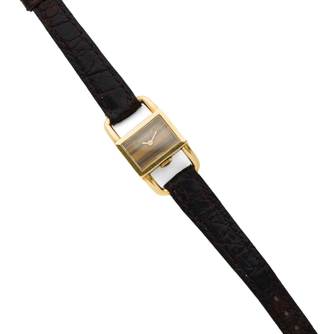 A 18k yellow gold manual winding lady's wristwatch by Jaeger Le Coultre with double signature from the retailer Hermès