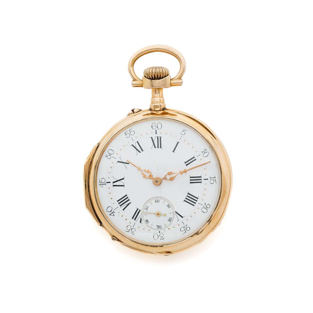 Boîtier : rond, cuvette en or, dos guilloché à décor de motifs floraux, numéroté