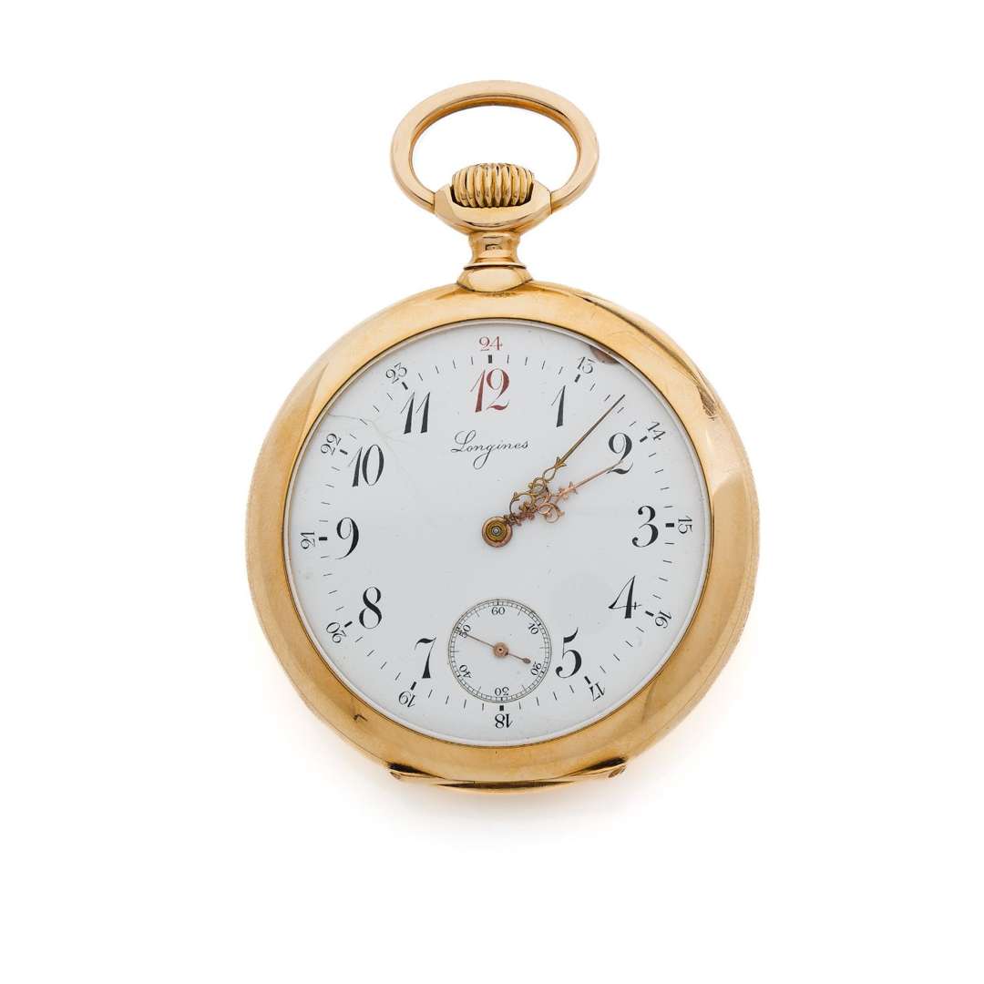 Boîtier : rond sur charnière, cuvette en or gravée « Longines Grand Prix Paris 1900 Chronomètre », dos monogrammé, gravure manuscrite « H. Limborgh » à l'intérieur, signé
