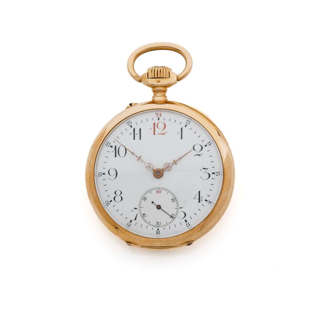 A 18k gold manual winding pocket watch retailed by Grottendiek, Brussel
