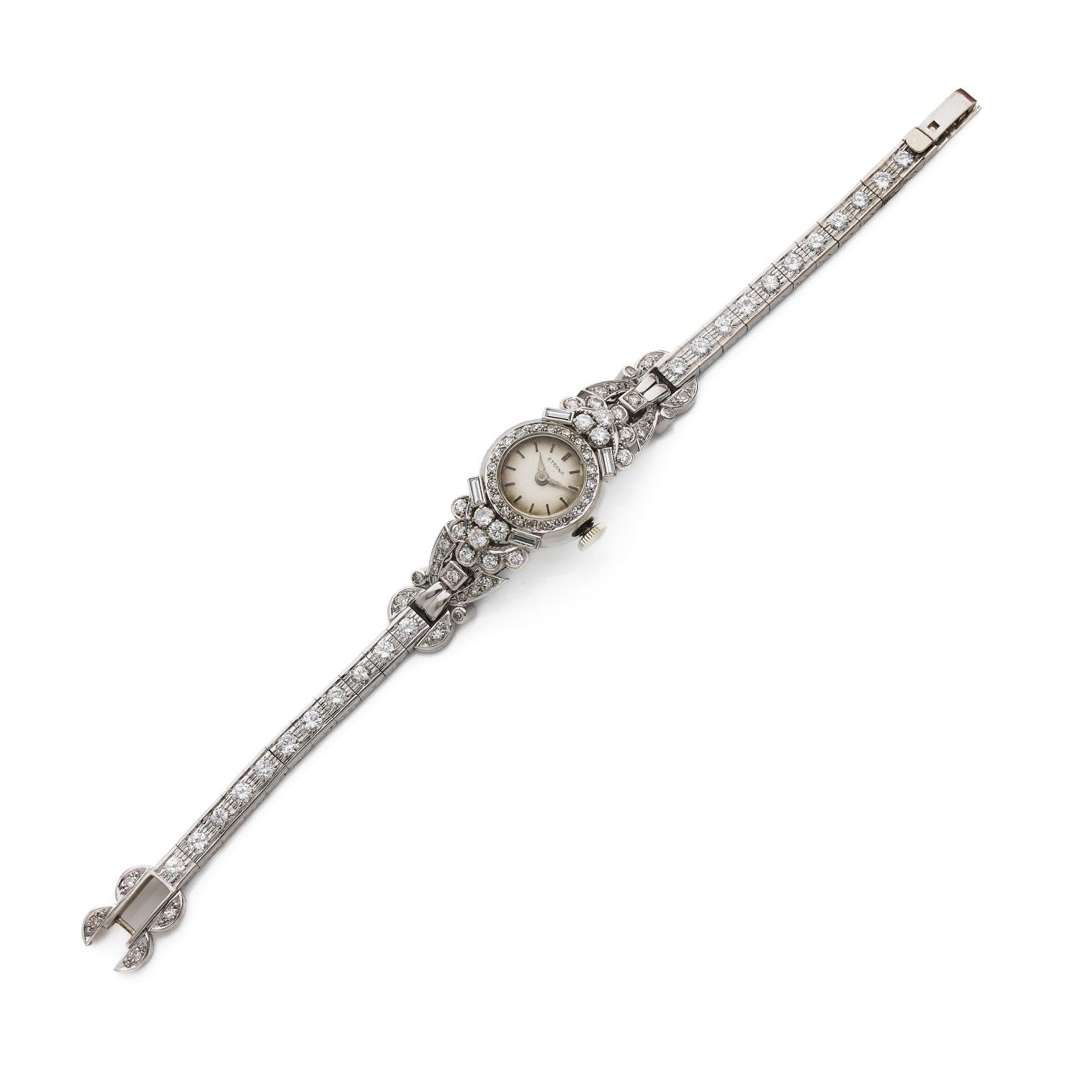 A 18k white gold and diamond-set manual winding lady's wristwatch.