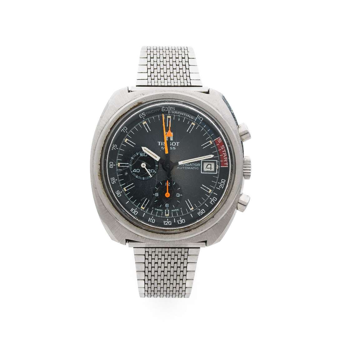 Cadran : bleu irisé avec index bâtons appliqués, date à guichet, 2 compteurs pour l'indication des secondes et 12 heures, et aiguille centrale pour les minutes, graduation 1/5e de seconde avec mode régate, signé