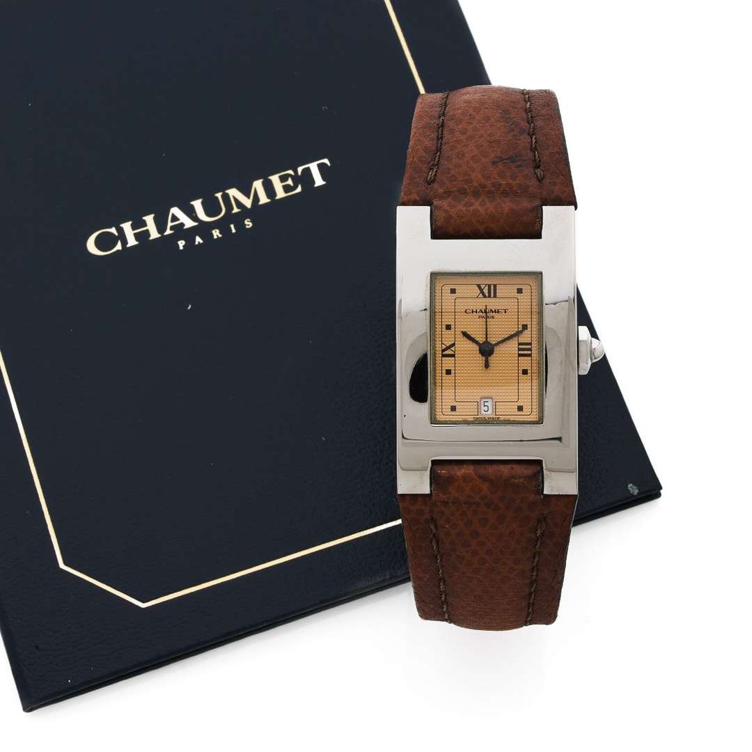 A stainless-steel quartz lady's wristwatch by Chaumet with presentation case and certificat (empty)