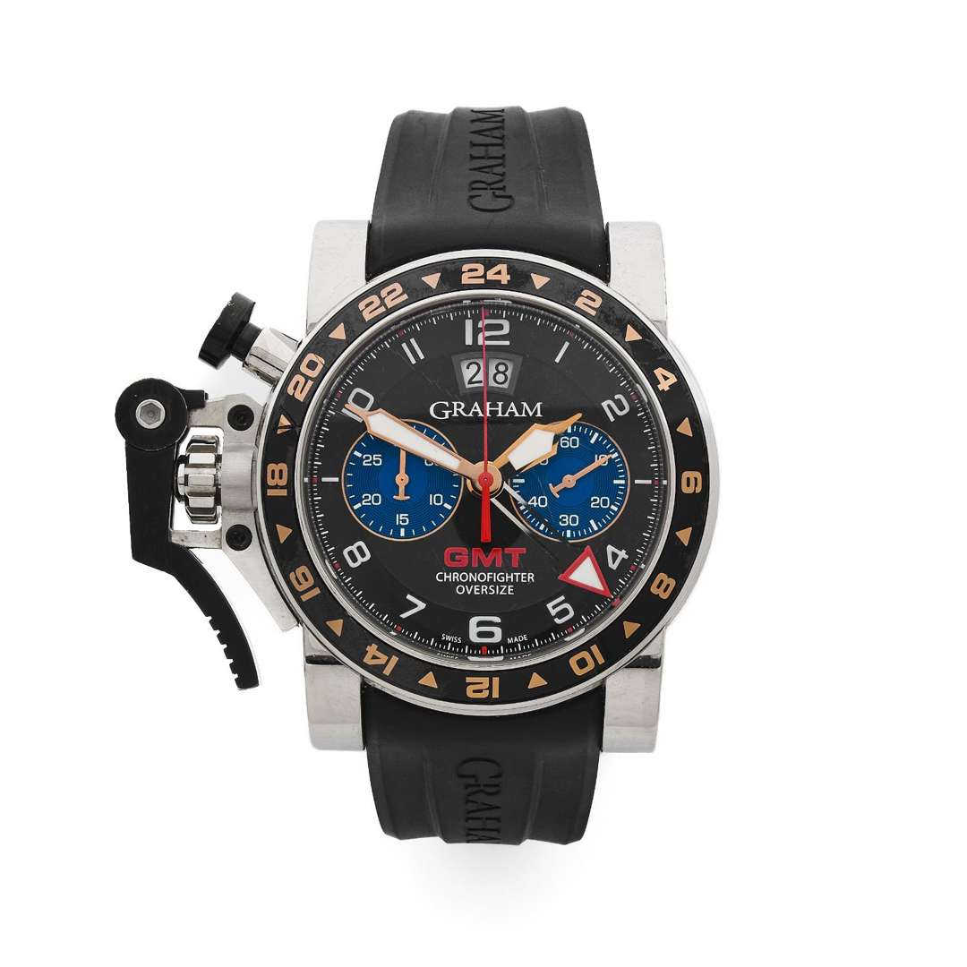 Boîtier : rond, lunette graduée, levier marche/arrêt pour le chronographe à 12h, fond transparent, signé
