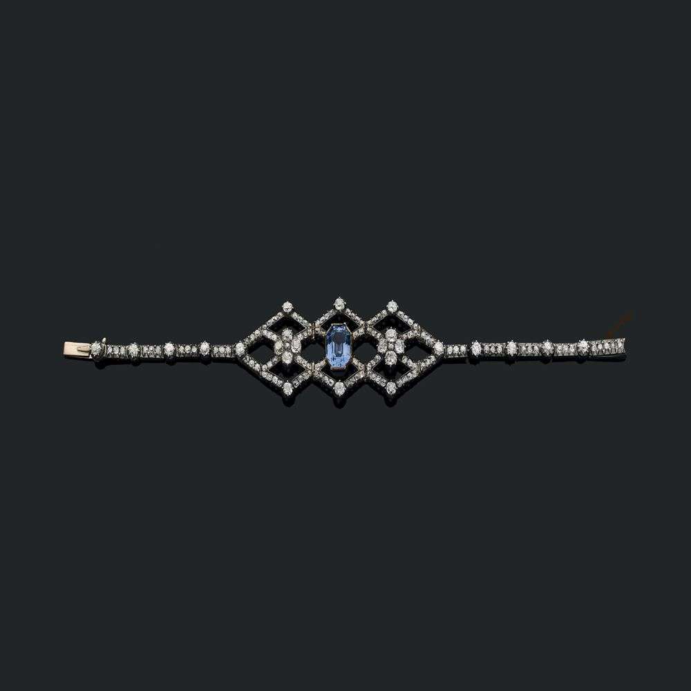 A sapphire, diamond, gold and silver bracelet, 19th Century