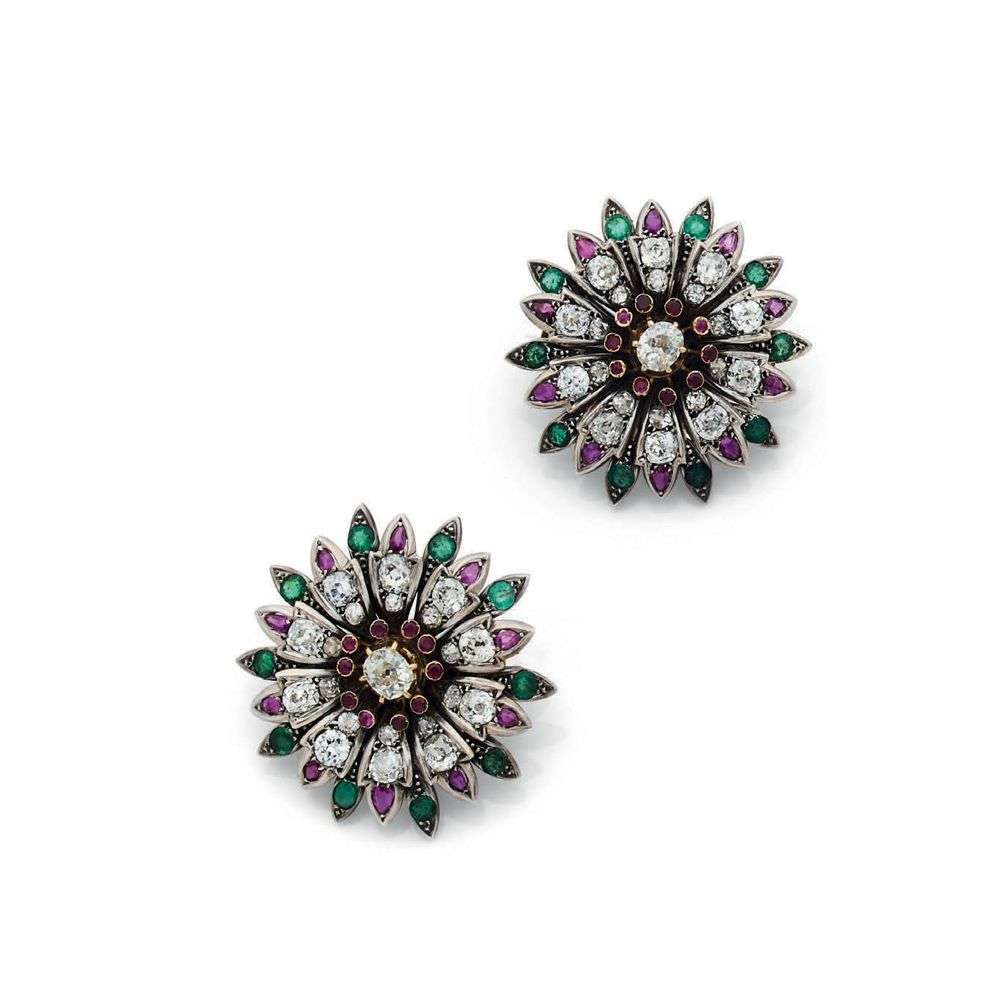 Diamants taille ancienne, rubis et émeraudes