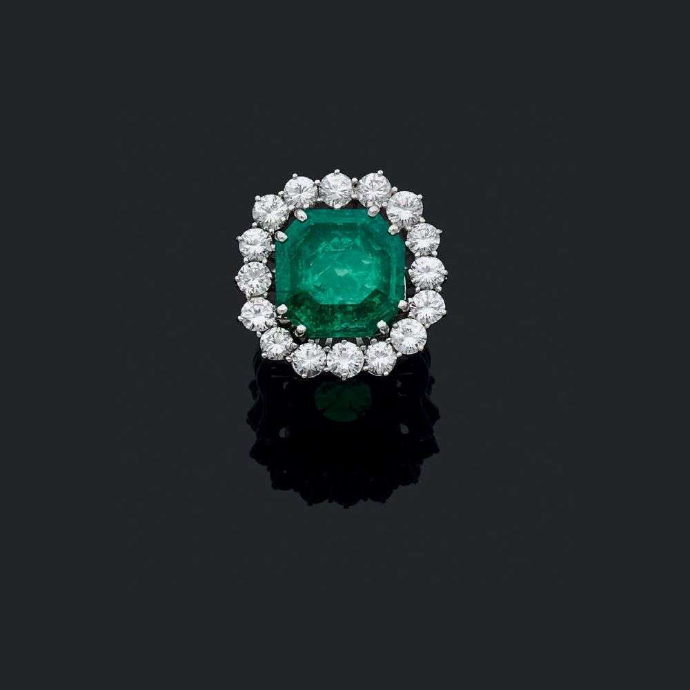 An emerald, diamond and platinum ring, report