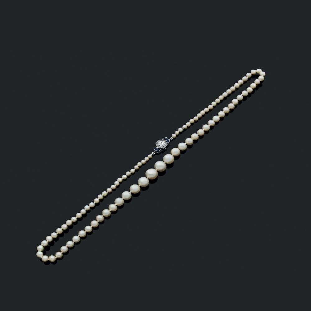 A natural pearl, sapphire and diamond necklace, report